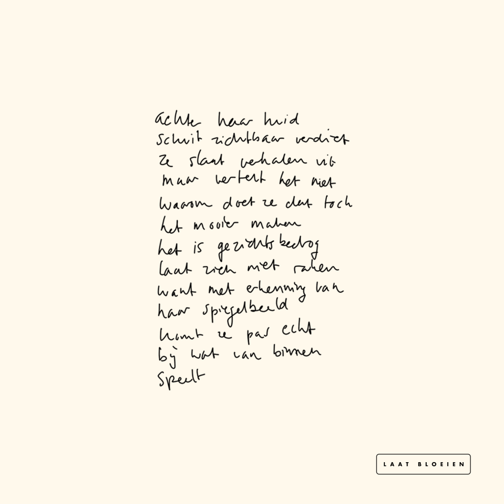Met haar nieuwe single neemt Laat Bloeien afscheid van het gezichtsbedrog dat haar zo lang in schijnveiligheid bracht. Met ‘Mooier’ streeft ze naar eerlijkheid van en naar zichzelf die zij – en alle verbloemers met haar – altijd al verdienden.